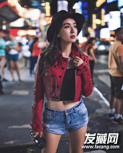 依旧是随性披散的卷发,搭配黑色的帽子,身着红色夹克,年华正好,展现轻熟女别样的魅力。