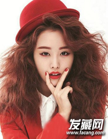 一款蓬松的爆炸头发型也是不错的选择哦,不仅有气质而且搭配上帽子后颇是显T台风,时尚的红棕色发色显得十分抢眼。