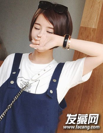 清爽的学生头的设计,不仅时尚而且颇有个性感,甜美的空气刘海与中短直发发型搭配起来勾勒出别致的时尚感来,十分有范。