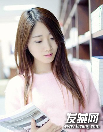 这一款偏分发型就很适合脸胖的女孩,旁分的发丝搭在脸颊配合柔顺的长发,尽显清秀女人味,棕色的