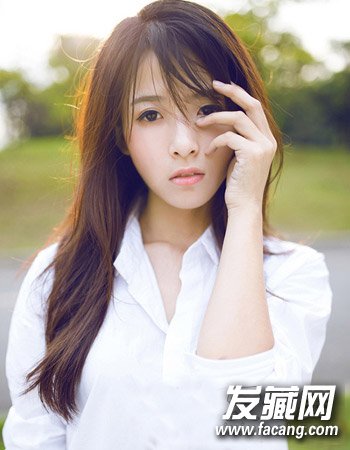 穿着白衬衫的校园女孩,纯洁美好,长发剪出层次看起来更加利落时尚,将刘海做斜,随意的打在额头上,修饰长脸型,乖顺内敛。