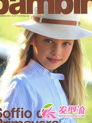 这样时尚有范儿的小女孩发型,肯定让很多辣妈们心动了吧!将秀发保留在其腰间的位置,不需要太多繁琐的打造就能够将自家的宝贝塑造出像明星一样的发型,柔顺飘逸有质感,有点小大人的感觉呢!独有的西方人发色搭配遮阳帽和条纹衬衫,让小女孩看上去非常的有范儿呢!
