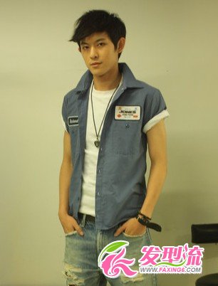 往外凸出的刘海制造出一种个性时尚的FEEL,同样采用自然色系黑色打造沉稳的个性!搭配休闲牛仔服饰,阳光大男孩一个!