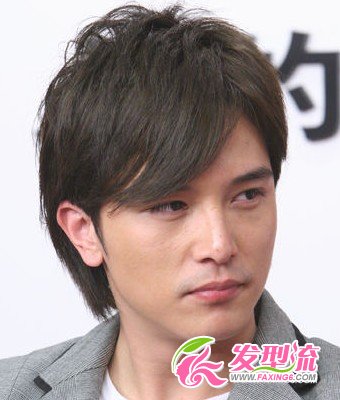 韩式斜刘海打造出花美男外形,头顶抓出发丝轻微的蓬松效果,衬托出立体的五官,如雕塑般的轮廓显现出男人味。