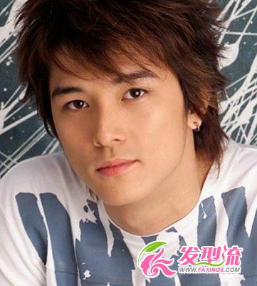 早期的一款男士发型,棕色系染发的注入让发型摆脱了沉闷感。轻薄的斜刘海下闪烁着烔烔有神的双眼,清澈迷人。